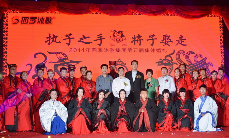 ? ? ? ?會議結(jié)束后,代表團(tuán)一行受邀觀摩了四季沐歌每年一度的集體婚禮,在主題為“執(zhí)子之手,將子娶走”的漢式集體婚禮現(xiàn)場,感受其獨(dú)特的企業(yè)文化魅力,我們深深被四季沐歌的“家”文化所感染。