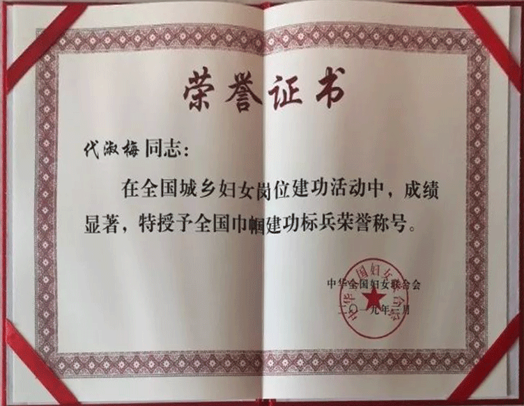 祝賀董事長代淑梅榮獲全國巾幗建功標兵榮譽稱號