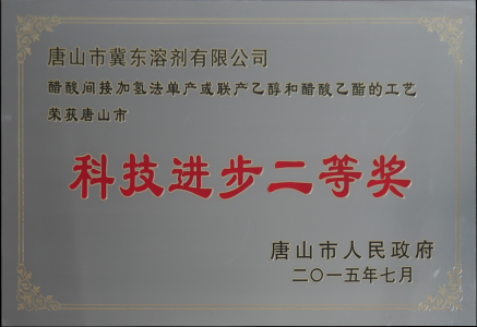 醋酸制乙醇項目榮獲唐山市科技進步二等獎